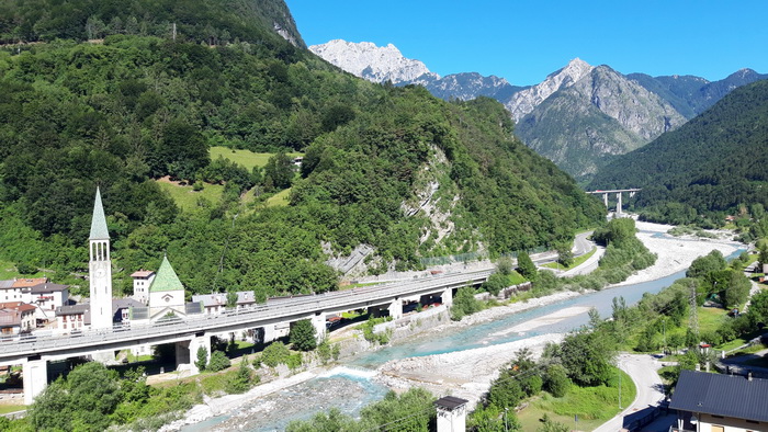 viaduktok, a Fella mély völgye, benne a folyó és a főút,